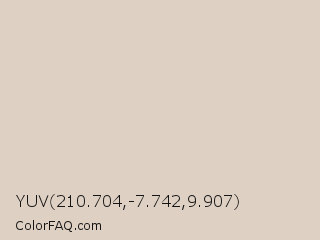 YUV 210.704,-7.742,9.907 Color is a very light orange color and the nearest color is Wafer #decbc6. Hex code #ded0c3 and RGB value is rgb(222,208,195). In RGB color space, this color is composed of 87% red, 82% green, 76% blue, In CMYK color space, this color is composed of 0% cyan, 6% magenta, 12% yellow , 13% black , In HSL color space, this color has a hue angle of 29° , 29% saturation and 82% lightness.