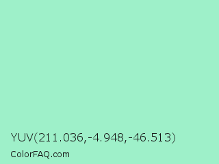 YUV 211.036,-4.948,-46.513 Color is a light green color and the nearest color is Magic Mint #aaf0d1. Hex code #9ef0c9 and RGB value is rgb(158,240,201). In RGB color space, this color is composed of 62% red, 94% green, 79% blue, In CMYK color space, this color is composed of 34% cyan, 0% magenta, 16% yellow , 6% black , In HSL color space, this color has a hue angle of 151° , 73% saturation and 78% lightness.