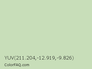 YUV 211.204,-12.919,-9.826 Color is a light green color and the nearest color is Pixie Green #c0d8b6. Hex code #c8deb9 and RGB value is rgb(200,222,185). In RGB color space, this color is composed of 78% red, 87% green, 73% blue, In CMYK color space, this color is composed of 10% cyan, 0% magenta, 17% yellow , 13% black , In HSL color space, this color has a hue angle of 96° , 36% saturation and 80% lightness.