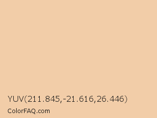 YUV 211.845,-21.616,26.446 Color is a light orange color and the nearest color is Pancho #edcdab. Hex code #f2cda8 and RGB value is rgb(242,205,168). In RGB color space, this color is composed of 95% red, 80% green, 66% blue, In CMYK color space, this color is composed of 0% cyan, 15% magenta, 31% yellow , 5% black , In HSL color space, this color has a hue angle of 30° , 74% saturation and 80% lightness.