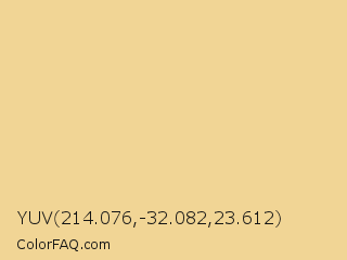 YUV 214.076,-32.082,23.612 Color is a light orange color and the nearest color is Chalky #eed794. Hex code #f1d595 and RGB value is rgb(241,213,149). In RGB color space, this color is composed of 95% red, 84% green, 58% blue, In CMYK color space, this color is composed of 0% cyan, 12% magenta, 38% yellow , 5% black , In HSL color space, this color has a hue angle of 42° , 77% saturation and 76% lightness.