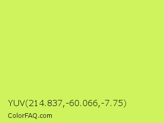 YUV 214.837,-60.066,-7.75 Color is a light lime color and the nearest color is Maximum Green Yellow #d9e650. Hex code #cef35d and RGB value is rgb(206,243,93). In RGB color space, this color is composed of 81% red, 95% green, 36% blue, In CMYK color space, this color is composed of 15% cyan, 0% magenta, 62% yellow , 5% black , In HSL color space, this color has a hue angle of 75° , 86% saturation and 66% lightness.