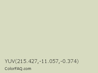 YUV 215.427,-11.057,-0.374 Color is a very light lime color and the nearest color is Tana #d9dcc1. Hex code #d7dcc1 and RGB value is rgb(215,220,193). In RGB color space, this color is composed of 84% red, 86% green, 76% blue, In CMYK color space, this color is composed of 2% cyan, 0% magenta, 12% yellow , 14% black , In HSL color space, this color has a hue angle of 71° , 28% saturation and 81% lightness.