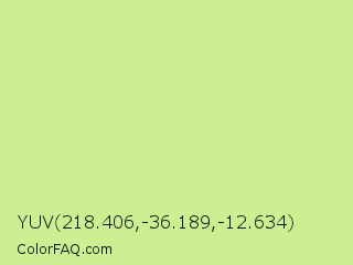YUV 218.406,-36.189,-12.634 Color is a light green color and the nearest color is Medium Spring Bud #c9dc87. Hex code #ccf091 and RGB value is rgb(204,240,145). In RGB color space, this color is composed of 80% red, 94% green, 57% blue, In CMYK color space, this color is composed of 15% cyan, 0% magenta, 40% yellow , 6% black , In HSL color space, this color has a hue angle of 83° , 76% saturation and 75% lightness.