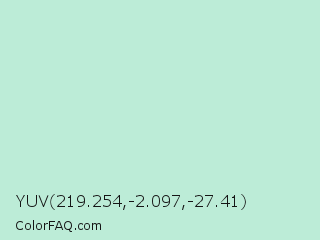 YUV 219.254,-2.097,-27.41 Color is a very light green color and the nearest color is Cruise #b5ecdf. Hex code #bcecd7 and RGB value is rgb(188,236,215). In RGB color space, this color is composed of 74% red, 93% green, 84% blue, In CMYK color space, this color is composed of 20% cyan, 0% magenta, 9% yellow , 7% black , In HSL color space, this color has a hue angle of 154° , 56% saturation and 83% lightness.