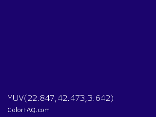 YUV 22.847,42.473,3.642 Color is a very dark indigo color and the nearest color is Paris M #26056a. Hex code #1b046d and RGB value is rgb(27,4,109). In RGB color space, this color is composed of 11% red, 2% green, 43% blue, In CMYK color space, this color is composed of 75% cyan, 96% magenta, 0% yellow , 57% black , In HSL color space, this color has a hue angle of 253° , 93% saturation and 22% lightness.