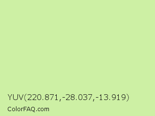 YUV 220.871,-28.037,-13.919 Color is a light green color and the nearest color is Gossip #d2f8b0. Hex code #cdf0a4 and RGB value is rgb(205,240,164). In RGB color space, this color is composed of 80% red, 94% green, 64% blue, In CMYK color space, this color is composed of 15% cyan, 0% magenta, 32% yellow , 6% black , In HSL color space, this color has a hue angle of 88° , 72% saturation and 79% lightness.