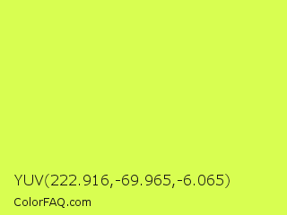 YUV 222.916,-69.965,-6.065 Color is a light lime color and the nearest color is Maximum Green Yellow #d9e650. Hex code #d8fe51 and RGB value is rgb(216,254,81). In RGB color space, this color is composed of 85% red, 100% green, 32% blue, In CMYK color space, this color is composed of 15% cyan, 0% magenta, 68% yellow , 0% black , In HSL color space, this color has a hue angle of 73° , 99% saturation and 66% lightness.