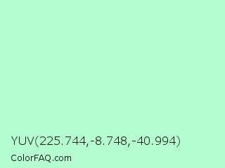 YUV 225.744,-8.748,-40.994 Color is a very light green color and the nearest color is Magic Mint #aaf0d1. Hex code #b3fdd0 and RGB value is rgb(179,253,208). In RGB color space, this color is composed of 70% red, 99% green, 82% blue, In CMYK color space, this color is composed of 29% cyan, 0% magenta, 18% yellow , 1% black , In HSL color space, this color has a hue angle of 144° , 95% saturation and 85% lightness.