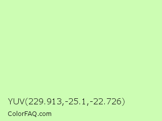 YUV 229.913,-25.1,-22.726 Color is a very light green color and the nearest color is Gossip #d2f8b0. Hex code #ccfdb3 and RGB value is rgb(204,253,179). In RGB color space, this color is composed of 80% red, 99% green, 70% blue, In CMYK color space, this color is composed of 19% cyan, 0% magenta, 29% yellow , 1% black , In HSL color space, this color has a hue angle of 100° , 95% saturation and 85% lightness.