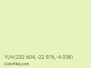 YUV 232.604,-22.976,-4.038 Color is a very light lime color and the nearest color is Caper #dcedb4. Hex code #e4f4ba and RGB value is rgb(228,244,186). In RGB color space, this color is composed of 89% red, 96% green, 73% blue, In CMYK color space, this color is composed of 7% cyan, 0% magenta, 24% yellow , 4% black , In HSL color space, this color has a hue angle of 77° , 73% saturation and 84% lightness.