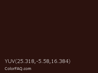 YUV 25.318,-5.58,16.384 Color is a very dark red color and the nearest color is Coffee Bean #2a140e. Hex code #2c120e and RGB value is rgb(44,18,14). In RGB color space, this color is composed of 17% red, 7% green, 5% blue, In CMYK color space, this color is composed of 0% cyan, 59% magenta, 68% yellow , 83% black , In HSL color space, this color has a hue angle of 8° , 52% saturation and 11% lightness.