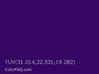 YUV 31.014,32.531,19.282 Color is a very dark purple color and the nearest color is Deep Violet #330066. Hex code #350761 and RGB value is rgb(53,7,97). In RGB color space, this color is composed of 21% red, 3% green, 38% blue, In CMYK color space, this color is composed of 45% cyan, 93% magenta, 0% yellow , 62% black , In HSL color space, this color has a hue angle of 271° , 87% saturation and 20% lightness.