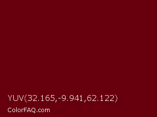 YUV 32.165,-9.941,62.122 Color is a very dark red color and the nearest color is Rosewood #65000b. Hex code #67000c and RGB value is rgb(103,-0,12). In RGB color space, this color is composed of 40% red, 0% green, 5% blue, In CMYK color space, this color is composed of 0% cyan, 100% magenta, 88% yellow , 60% black , In HSL color space, this color has a hue angle of 353° , 100% saturation and 20% lightness.