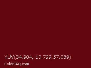 YUV 34.904,-10.799,57.089 Color is a very dark red color and the nearest color is Rosewood #65000b. Hex code #64060d and RGB value is rgb(100,6,13). In RGB color space, this color is composed of 39% red, 2% green, 5% blue, In CMYK color space, this color is composed of 0% cyan, 94% magenta, 87% yellow , 61% black , In HSL color space, this color has a hue angle of 356° , 89% saturation and 21% lightness.