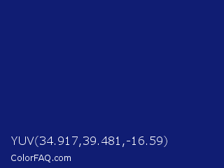YUV 34.917,39.481,-16.59 Color is a dark blue color and the nearest color is Midnight Blue #191970. Hex code #101d73 and RGB value is rgb(16,29,115). In RGB color space, this color is composed of 6% red, 11% green, 45% blue, In CMYK color space, this color is composed of 86% cyan, 75% magenta, 0% yellow , 55% black , In HSL color space, this color has a hue angle of 232° , 76% saturation and 26% lightness.