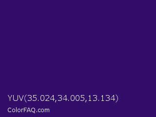 YUV 35.024,34.005,13.134 Color is a dark violet color and the nearest color is Christalle #33036b. Hex code #320e68 and RGB value is rgb(50,14,104). In RGB color space, this color is composed of 20% red, 5% green, 41% blue, In CMYK color space, this color is composed of 52% cyan, 87% magenta, 0% yellow , 59% black , In HSL color space, this color has a hue angle of 264° , 76% saturation and 23% lightness.