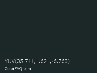 YUV 35.711,1.621,-6.763 Color is a very dark cyan color and the nearest color is Dark Gunmetal #1f262a. Hex code #1c2727 and RGB value is rgb(28,39,39). In RGB color space, this color is composed of 11% red, 15% green, 15% blue, In CMYK color space, this color is composed of 28% cyan, 0% magenta, 0% yellow , 85% black , In HSL color space, this color has a hue angle of 180° , 16% saturation and 13% lightness.