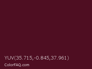 YUV 35.715,-0.845,37.961 Color is a very dark rose color and the nearest color is Cab Sav #4d0a18. Hex code #4f0e22 and RGB value is rgb(79,14,34). In RGB color space, this color is composed of 31% red, 5% green, 13% blue, In CMYK color space, this color is composed of 0% cyan, 82% magenta, 57% yellow , 69% black , In HSL color space, this color has a hue angle of 342° , 70% saturation and 18% lightness.