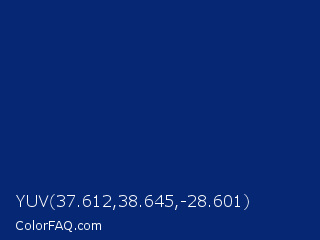 YUV 37.612,38.645,-28.601 Color is a dark blue color and the nearest color is Catalina Blue #062a78. Hex code #052774 and RGB value is rgb(5,39,116). In RGB color space, this color is composed of 2% red, 15% green, 45% blue, In CMYK color space, this color is composed of 96% cyan, 66% magenta, 0% yellow , 55% black , In HSL color space, this color has a hue angle of 222° , 92% saturation and 24% lightness.