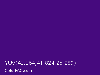 YUV 41.164,41.824,25.289 Color is a dark purple color and the nearest color is Kingfisher Daisy #3e0480. Hex code #460a7e and RGB value is rgb(70,10,126). In RGB color space, this color is composed of 27% red, 4% green, 49% blue, In CMYK color space, this color is composed of 44% cyan, 92% magenta, 0% yellow , 51% black , In HSL color space, this color has a hue angle of 271° , 85% saturation and 27% lightness.