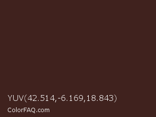 YUV 42.514,-6.169,18.843 Color is a very dark red color and the nearest color is Jon #3b1f1f. Hex code #40221e and RGB value is rgb(64,34,30). In RGB color space, this color is composed of 25% red, 13% green, 12% blue, In CMYK color space, this color is composed of 0% cyan, 47% magenta, 53% yellow , 75% black , In HSL color space, this color has a hue angle of 7° , 36% saturation and 18% lightness.