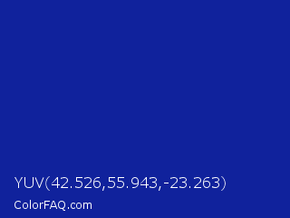 YUV 42.526,55.943,-23.263 Color is a normal blue color and the nearest color is Torea Bay #0f2d9e. Hex code #10229c and RGB value is rgb(16,34,156). In RGB color space, this color is composed of 6% red, 13% green, 61% blue, In CMYK color space, this color is composed of 90% cyan, 78% magenta, 0% yellow , 39% black , In HSL color space, this color has a hue angle of 232° , 81% saturation and 34% lightness.