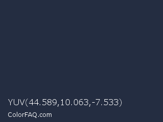 YUV 44.589,10.063,-7.533 Color is a very dark blue color and the nearest color is Ebony Clay #26283b. Hex code #242d41 and RGB value is rgb(36,45,65). In RGB color space, this color is composed of 14% red, 18% green, 25% blue, In CMYK color space, this color is composed of 45% cyan, 31% magenta, 0% yellow , 75% black , In HSL color space, this color has a hue angle of 221° , 29% saturation and 20% lightness.