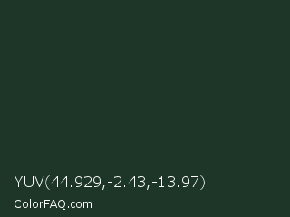 YUV 44.929,-2.43,-13.97 Color is a very dark green color and the nearest color is Medium Jungle Green #1c352d. Hex code #1d3628 and RGB value is rgb(29,54,40). In RGB color space, this color is composed of 11% red, 21% green, 16% blue, In CMYK color space, this color is composed of 46% cyan, 0% magenta, 26% yellow , 79% black , In HSL color space, this color has a hue angle of 146° , 30% saturation and 16% lightness.