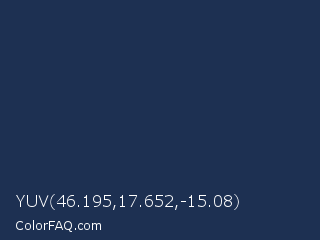 YUV 46.195,17.652,-15.08 Color is a very dark blue color and the nearest color is Cloud Burst #202e54. Hex code #1d3052 and RGB value is rgb(29,48,82). In RGB color space, this color is composed of 11% red, 19% green, 32% blue, In CMYK color space, this color is composed of 65% cyan, 41% magenta, 0% yellow , 68% black , In HSL color space, this color has a hue angle of 218° , 48% saturation and 22% lightness.