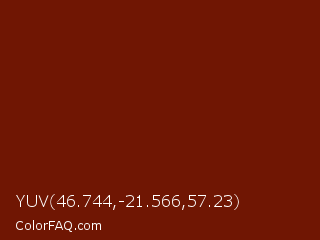 YUV 46.744,-21.566,57.23 Color is a dark red color and the nearest color is Cedar Wood Finish #711a00. Hex code #701603 and RGB value is rgb(112,22,3). In RGB color space, this color is composed of 44% red, 9% green, 1% blue, In CMYK color space, this color is composed of 0% cyan, 80% magenta, 97% yellow , 56% black , In HSL color space, this color has a hue angle of 10° , 95% saturation and 23% lightness.
