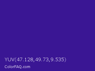 YUV 47.128,49.73,9.535 Color is a normal indigo color and the nearest color is Pixie Powder #391285. Hex code #3a1694 and RGB value is rgb(58,22,148). In RGB color space, this color is composed of 23% red, 9% green, 58% blue, In CMYK color space, this color is composed of 61% cyan, 85% magenta, 0% yellow , 42% black , In HSL color space, this color has a hue angle of 257° , 74% saturation and 33% lightness.