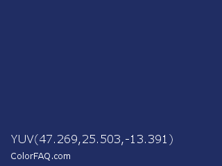 YUV 47.269,25.503,-13.391 Color is a dark blue color and the nearest color is Biscay #1b3162. Hex code #202d63 and RGB value is rgb(32,45,99). In RGB color space, this color is composed of 13% red, 18% green, 39% blue, In CMYK color space, this color is composed of 68% cyan, 55% magenta, 0% yellow , 61% black , In HSL color space, this color has a hue angle of 228° , 51% saturation and 26% lightness.