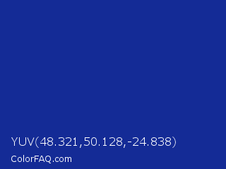 YUV 48.321,50.128,-24.838 Color is a normal blue color and the nearest color is Torea Bay #0f2d9e. Hex code #142b96 and RGB value is rgb(20,43,150). In RGB color space, this color is composed of 8% red, 17% green, 59% blue, In CMYK color space, this color is composed of 87% cyan, 71% magenta, 0% yellow , 41% black , In HSL color space, this color has a hue angle of 229° , 76% saturation and 33% lightness.