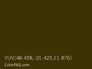 YUV 48.458,-21.425,11.876 Color is a very dark yellow color and the nearest color is Madras #3f3002. Hex code #3e3205 and RGB value is rgb(62,50,5). In RGB color space, this color is composed of 24% red, 20% green, 2% blue, In CMYK color space, this color is composed of 0% cyan, 19% magenta, 92% yellow , 76% black , In HSL color space, this color has a hue angle of 47° , 85% saturation and 13% lightness.