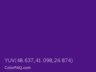 YUV 48.637,41.098,24.874 Color is a dark purple color and the nearest color is Pigment Indigo #4b0082. Hex code #4d1284 and RGB value is rgb(77,18,132). In RGB color space, this color is composed of 30% red, 7% green, 52% blue, In CMYK color space, this color is composed of 42% cyan, 86% magenta, 0% yellow , 48% black , In HSL color space, this color has a hue angle of 271° , 76% saturation and 29% lightness.