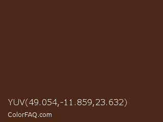 YUV 49.054,-11.859,23.632 Color is a very dark orange color and the nearest color is Brown Derby #492615. Hex code #4c2819 and RGB value is rgb(76,40,25). In RGB color space, this color is composed of 30% red, 16% green, 10% blue, In CMYK color space, this color is composed of 0% cyan, 47% magenta, 67% yellow , 70% black , In HSL color space, this color has a hue angle of 18° , 50% saturation and 20% lightness.