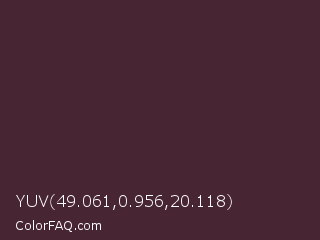 YUV 49.061,0.956,20.118 Color is a very dark rose color and the nearest color is Livid Brown #4d282e. Hex code #482533 and RGB value is rgb(72,37,51). In RGB color space, this color is composed of 28% red, 15% green, 20% blue, In CMYK color space, this color is composed of 0% cyan, 49% magenta, 29% yellow , 72% black , In HSL color space, this color has a hue angle of 336° , 32% saturation and 21% lightness.