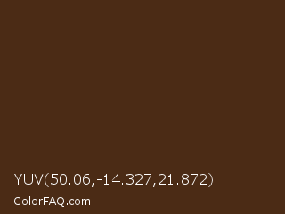 YUV 50.06,-14.327,21.872 Color is a very dark orange color and the nearest color is Brown Derby #492615. Hex code #4b2b15 and RGB value is rgb(75,43,21). In RGB color space, this color is composed of 29% red, 17% green, 8% blue, In CMYK color space, this color is composed of 0% cyan, 43% magenta, 72% yellow , 71% black , In HSL color space, this color has a hue angle of 24° , 56% saturation and 19% lightness.