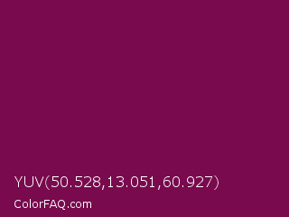 YUV 50.528,13.051,60.927 Color is a dark magenta color and the nearest color is Rose Bud Cherry #800b47. Hex code #780a4d and RGB value is rgb(120,10,77). In RGB color space, this color is composed of 47% red, 4% green, 30% blue, In CMYK color space, this color is composed of 0% cyan, 92% magenta, 36% yellow , 53% black , In HSL color space, this color has a hue angle of 323° , 85% saturation and 25% lightness.