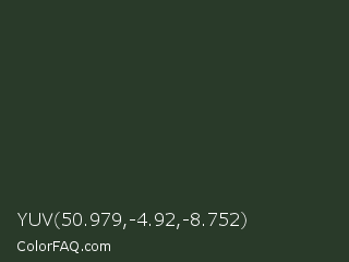 YUV 50.979,-4.92,-8.752 Color is a very dark green color and the nearest color is Black Leather Jacket #253529. Hex code #293a29 and RGB value is rgb(41,58,41). In RGB color space, this color is composed of 16% red, 23% green, 16% blue, In CMYK color space, this color is composed of 29% cyan, 0% magenta, 29% yellow , 77% black , In HSL color space, this color has a hue angle of 120° , 17% saturation and 19% lightness.
