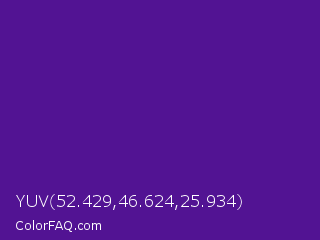 YUV 52.429,46.624,25.934 Color is a normal violet color and the nearest color is Daisy Bush #4f2398. Hex code #521393 and RGB value is rgb(82,19,147). In RGB color space, this color is composed of 32% red, 7% green, 58% blue, In CMYK color space, this color is composed of 44% cyan, 87% magenta, 0% yellow , 42% black , In HSL color space, this color has a hue angle of 270° , 77% saturation and 33% lightness.