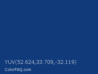YUV 52.624,33.709,-32.119 Color is a dark blue color and the nearest color is Dark Cerulean #08457e. Hex code #103a79 and RGB value is rgb(16,58,121). In RGB color space, this color is composed of 6% red, 23% green, 47% blue, In CMYK color space, this color is composed of 87% cyan, 52% magenta, 0% yellow , 53% black , In HSL color space, this color has a hue angle of 216° , 77% saturation and 27% lightness.