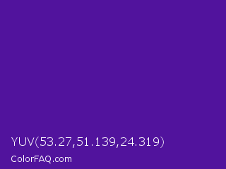 YUV 53.27,51.139,24.319 Color is a normal violet color and the nearest color is Daisy Bush #4f2398. Hex code #51139d and RGB value is rgb(81,19,157). In RGB color space, this color is composed of 32% red, 7% green, 62% blue, In CMYK color space, this color is composed of 48% cyan, 88% magenta, 0% yellow , 38% black , In HSL color space, this color has a hue angle of 267° , 78% saturation and 35% lightness.