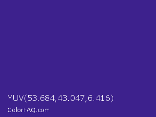 YUV 53.684,43.047,6.416 Color is a normal indigo color and the nearest color is Pixie Powder #391285. Hex code #3d218d and RGB value is rgb(61,33,141). In RGB color space, this color is composed of 24% red, 13% green, 55% blue, In CMYK color space, this color is composed of 57% cyan, 77% magenta, 0% yellow , 45% black , In HSL color space, this color has a hue angle of 256° , 62% saturation and 34% lightness.