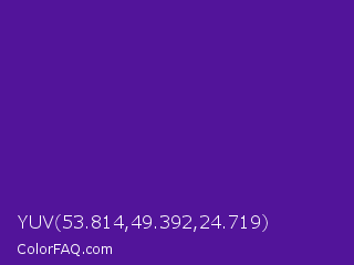 YUV 53.814,49.392,24.719 Color is a normal violet color and the nearest color is Daisy Bush #4f2398. Hex code #52149a and RGB value is rgb(82,20,154). In RGB color space, this color is composed of 32% red, 8% green, 60% blue, In CMYK color space, this color is composed of 47% cyan, 87% magenta, 0% yellow , 40% black , In HSL color space, this color has a hue angle of 268° , 77% saturation and 34% lightness.
