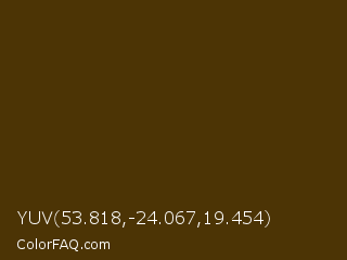 YUV 53.818,-24.067,19.454 Color is a very dark orange color and the nearest color is Deep Bronze #4a3004. Hex code #4c3405 and RGB value is rgb(76,52,5). In RGB color space, this color is composed of 30% red, 20% green, 2% blue, In CMYK color space, this color is composed of 0% cyan, 32% magenta, 93% yellow , 70% black , In HSL color space, this color has a hue angle of 40° , 88% saturation and 16% lightness.
