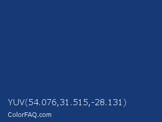 YUV 54.076,31.515,-28.131 Color is a dark blue color and the nearest color is Astronaut #283a77. Hex code #163a76 and RGB value is rgb(22,58,118). In RGB color space, this color is composed of 9% red, 23% green, 46% blue, In CMYK color space, this color is composed of 81% cyan, 51% magenta, 0% yellow , 54% black , In HSL color space, this color has a hue angle of 218° , 69% saturation and 27% lightness.