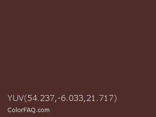YUV 54.237,-6.033,21.717 Color is a dark red color and the nearest color is Cowboy #4d282d. Hex code #4f2c2a and RGB value is rgb(79,44,42). In RGB color space, this color is composed of 31% red, 17% green, 16% blue, In CMYK color space, this color is composed of 0% cyan, 44% magenta, 47% yellow , 69% black , In HSL color space, this color has a hue angle of 3° , 31% saturation and 24% lightness.