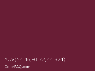 YUV 54.46,-0.72,44.324 Color is a dark rose color and the nearest color is Wine Berry #591d35. Hex code #691d35 and RGB value is rgb(105,29,53). In RGB color space, this color is composed of 41% red, 11% green, 21% blue, In CMYK color space, this color is composed of 0% cyan, 72% magenta, 50% yellow , 59% black , In HSL color space, this color has a hue angle of 341° , 57% saturation and 26% lightness.